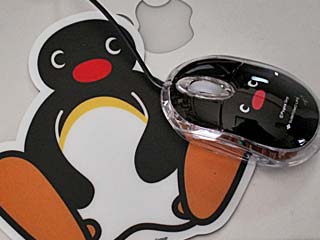 こんな感じ → ピングーのマウスパッドと、半スケルトンなマウス